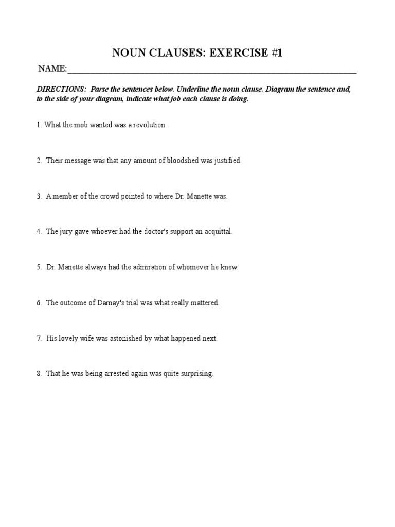 Noun Clause Worksheet - Noun Clauses Worksheets : A noun clause is essentially a dependent clause that typically functions as a noun in a sentence.. Hundreds of pdf lesson plans. Fill in the blanks with the suitable conjunctions given (more than one alternative might be possible in some cases) that why if which whether when who where whose what how 1. Here the noun clause 'that i will win the first prize' acts as the object of the verb. Worksheets that save paper, ink and time. Words that introduce noun clauses: